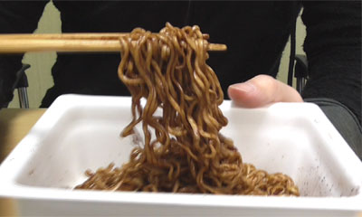 普通のチョコソースを、普通の焼そばの麺にかけたような感じですね。口の中で、むわっとチョコの甘さが広がります。