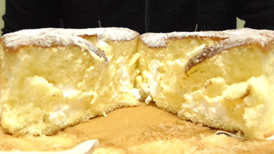 シフォン生地はふんわり柔らかく、上面の粉糖が軽くシャリシャリとしてます。