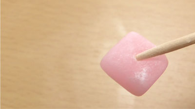 少々固さがあり、噛みこむとネチネチとしていてそこそこ歯にくっつきます。