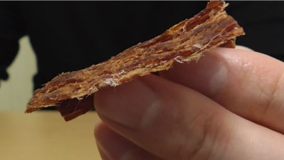 確かにビーフジャーキーでは有りますが、噛みごたえがなく、その分旨味も弱いです。まあ、50円なので値段の割には頑張ってるのではないかと。 pic.twitter.com/LXBo9zXAyq