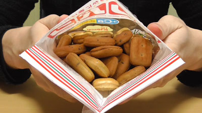 サクサクしていて少々口の中がぱさつく感じで、ほんのりとした甘さに香ばしさ、胡麻の風味が口に広がります。