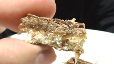 ビスケットとキャラメルが、ミルクチョコレートで包まれております。